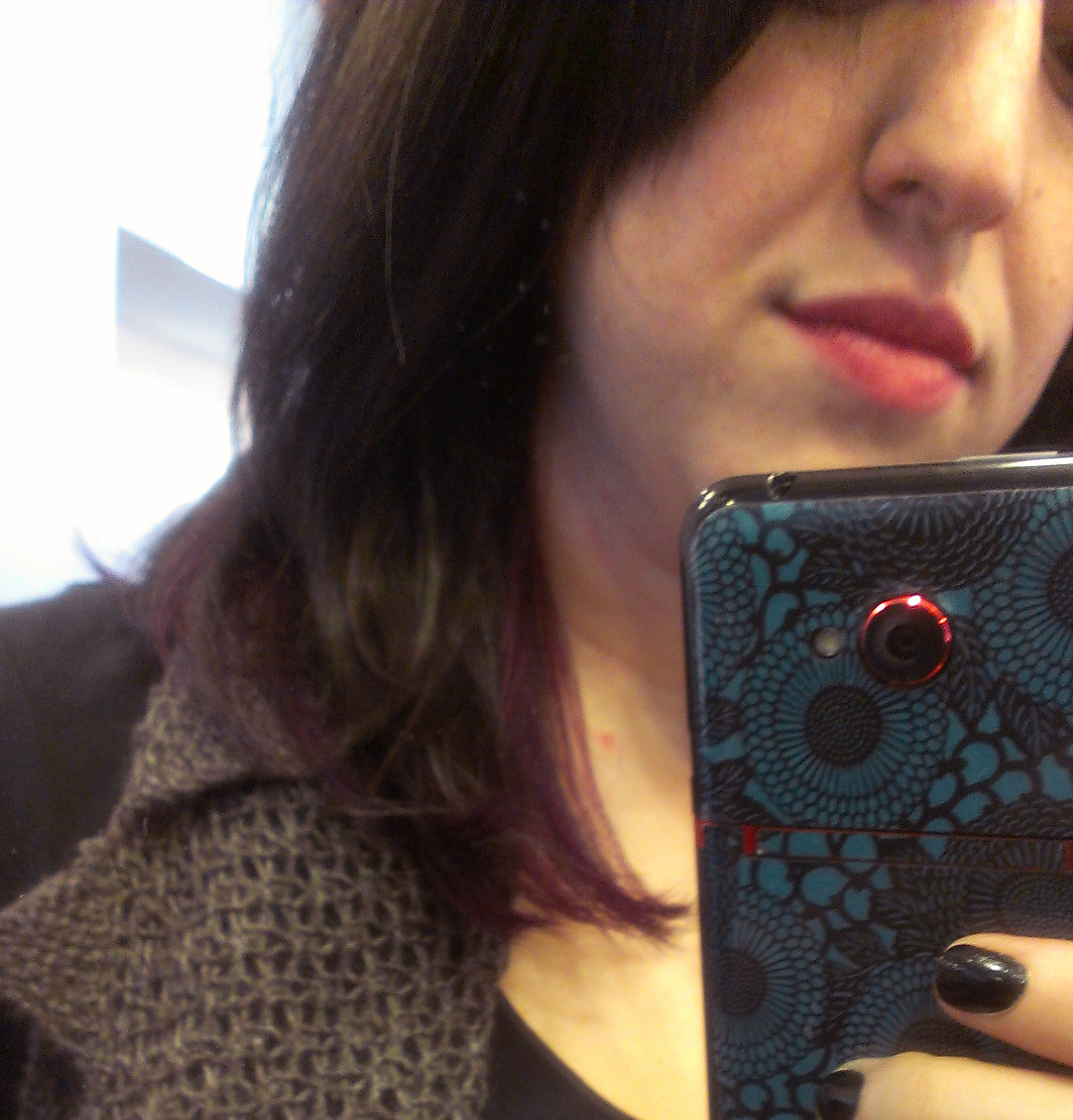 So, what is a color-starved girl to do aside from dreaming of her future garden? Well, I dyed my hair. Not all of it, just a little bit. This is the first time I’ve done anything remotely like this, but I finally have a hair stylist that I trust, so I let her bleach and dye away (my hair is dark enough that it won’t really take dye without a bleaching first, which is why I’ve never done it before).
