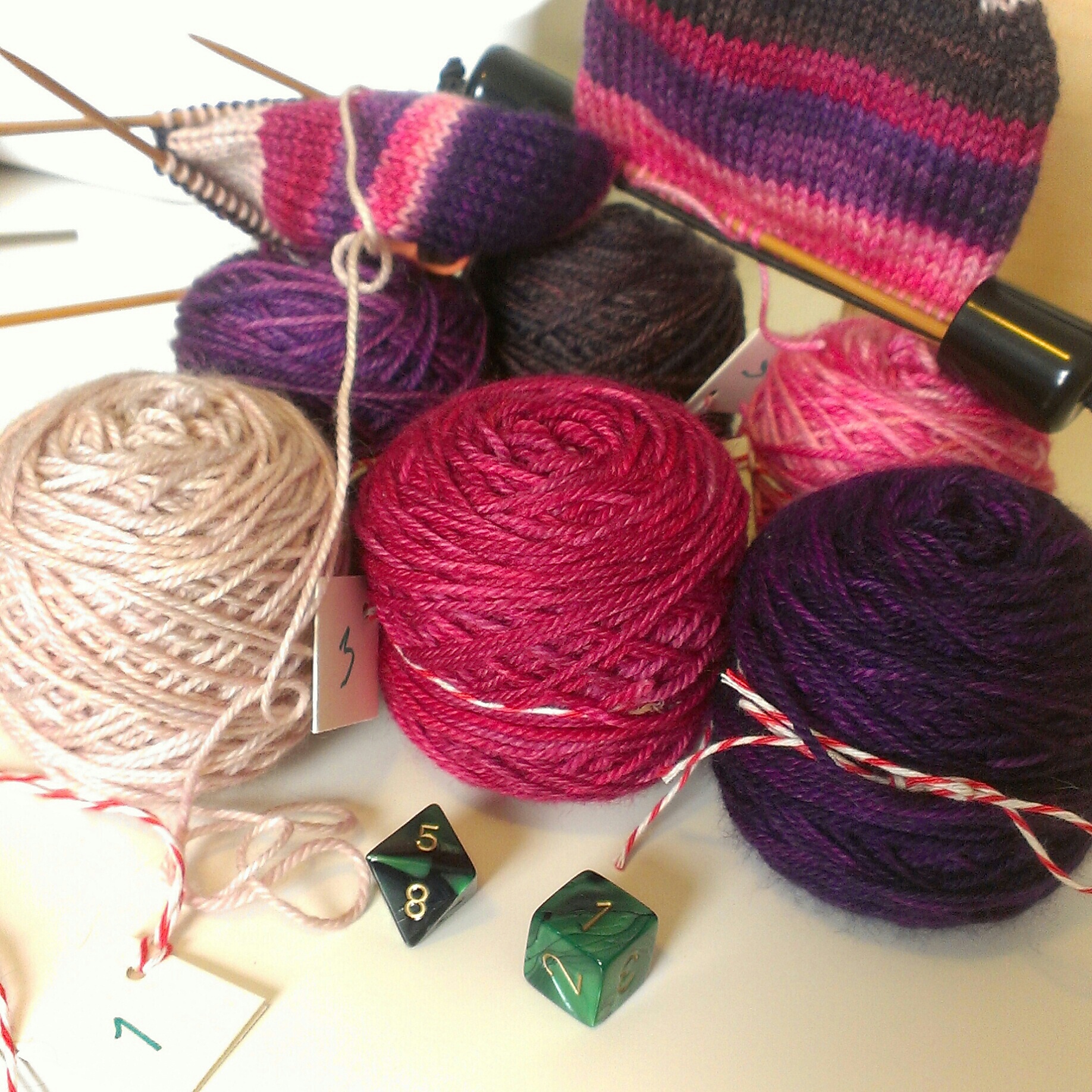 I’m knitting stripey socks. But with the stripe pattern being determined by the roll of some dice.